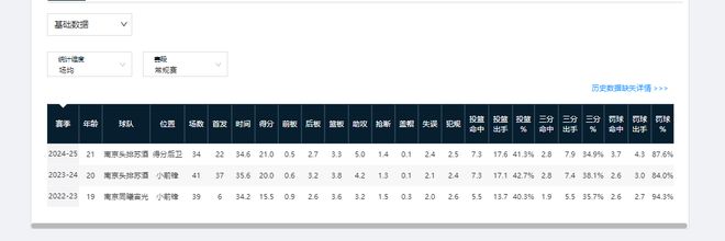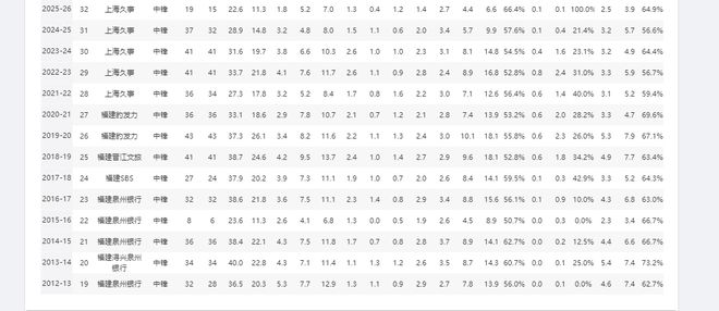 在福建男籃生涯的後八個賽季,王哲林更是有6個賽季常規賽,全部以首發身份出戰。所以不止新秀第一年就是球隊老大,他算是每個賽季都是球隊核心。王哲林也不負眾望,在福建隊書寫了“出道即巔峰”的職業生涯開篇,新秀賽季便交出場均20.3分12.9籃板的兩雙數據。