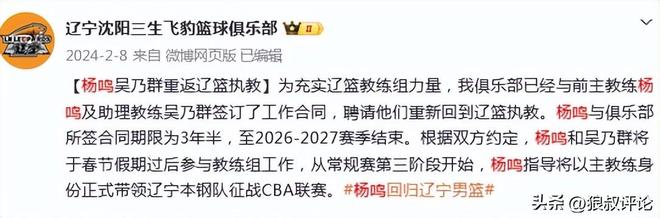 北京時間1月26日,根據遼籃官方社媒的公示,功勳名帥楊鳴卸任主帥位置,助理教練烏戈再次接任,對於現階段的遼籃,是否意味著是主動求變的信號。
