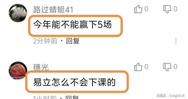 易立率隊慘淡的戰績,也被球迷詬病。“江蘇隊不要臉。易立臉皮厚”;“今年能不能贏下5場”;“易立怎麽不會下課的”;“我已經說了很多遍了,江蘇有易立在永遠不可能崛起”;“易立趕緊下課吧”;“江蘇隊真的太差了”;“現在的易立成為了新的不倒翁”;“坑爹呀,年年如此”;“沒三分球的球隊,能贏才怪”;“江蘇是教練的問題,還是球員的問題?”……