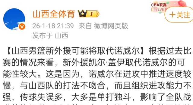 山西男籃隨著奈特的加盟和張寧複出,球隊的狀況得到了提升,不過他們還是決定更換外援,凱爾蓋伊已經完成了簽約,根據多位山西媒體人透露,本賽季初期表現不錯的諾威爾會被換掉,山西男籃本賽季想要衝擊更好成績,其實還需要一個更優秀的內線中鋒。