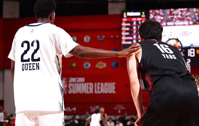奎因目前在官網新秀榜中位列第四,場均交出12.6分、7.6個籃板、4.3次助攻的全麵數據。反觀楊瀚森,在主帥斯普利特麾下,他幾乎沒有獲得出場機會。無論進攻端還是防守端,楊瀚森都還有極大的提升空間;他目前的狀態更適合留在發展聯盟,通過大量比賽打磨技術,適應NBA的比賽速度。