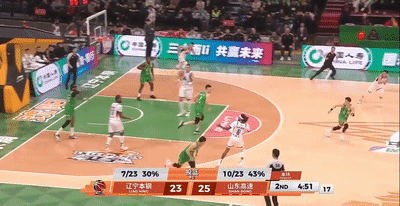 但遼寧沒有把握住機會,郭凱搶斷趙繼偉助攻高詩岩快攻打進,莫蘭德再被吹罰進攻犯規,6分58秒,陳林堅亂戰中飆進個人第3記三分,山東領先來到71-63!