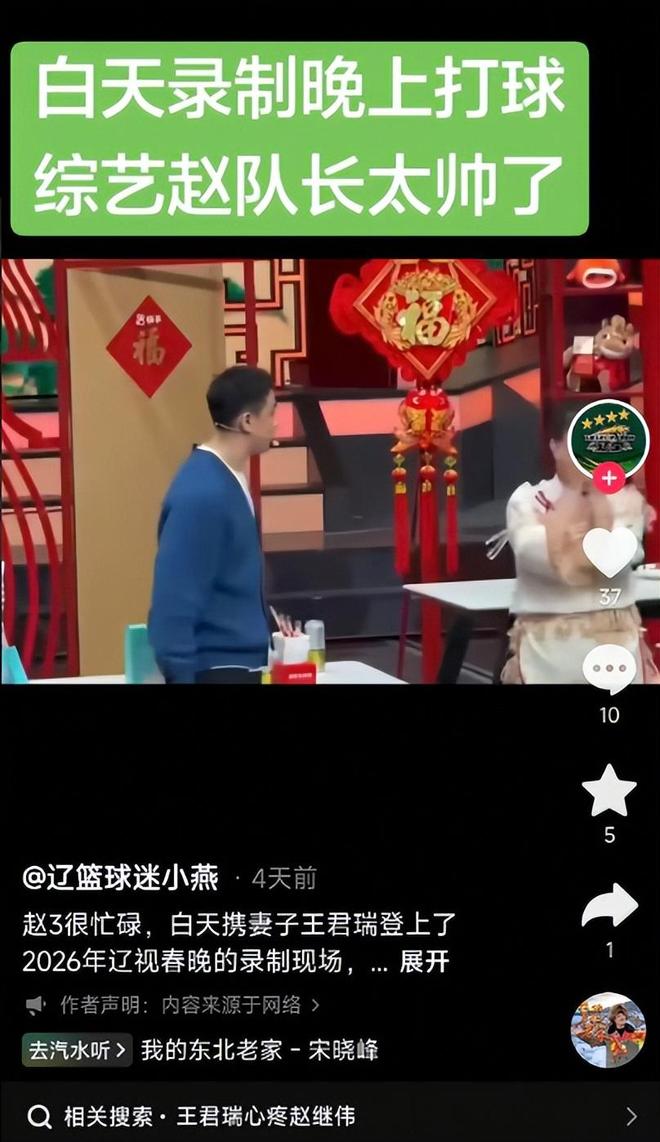 網友的話似乎有一些道理,但之前趙繼偉因為在全運會上受傷,所以一直在養傷,直到最近才複出,所以他拍廣告和錄製春晚應該都是在養傷期間進行的,並不耽誤聯賽。