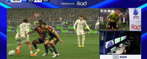 本場比賽傷停補時階段,韋爾加拉在禁區內被熱那亞前鋒科爾內踩到腳麵,最終在VAR介入之後當時主裁達維德-馬薩判罰了點球,霍伊倫也依靠這粒點球為那不勒斯完成了絕殺。