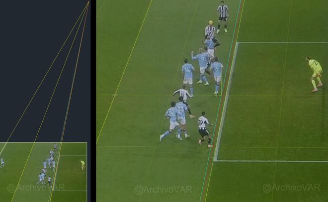 裁判組在進行越位判定時認為曼城後衛魯本-迪亞斯的位置是導致第一次參與射門的吉馬良斯並不越位的原因,然而通過Archivo VAR發布的傳球瞬間透視分析圖可以看出,吉馬良斯的腳尖實際上已經明顯越位。