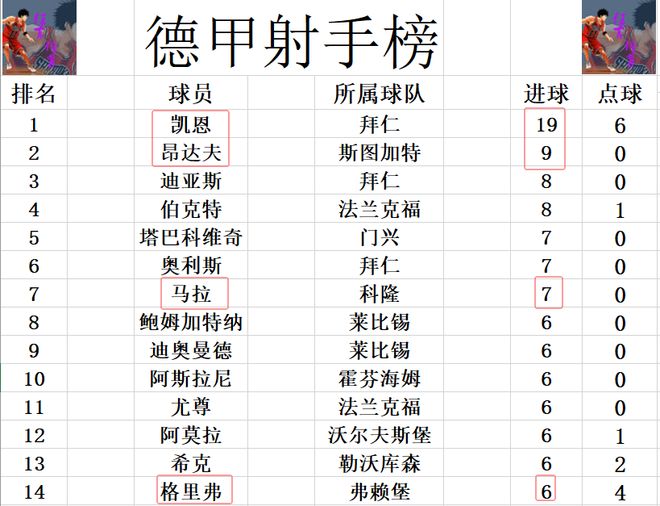 射手榜方麵,凱恩19球領跑,昂達夫今天2傳1射造3球,超過迪亞斯,伯克特1球,9球獨居第2。馬拉破門追上奧利斯和塔巴科維奇,7球並列第5,格裏弗進球,追上阿莫拉等人6球剛好擠入前十。