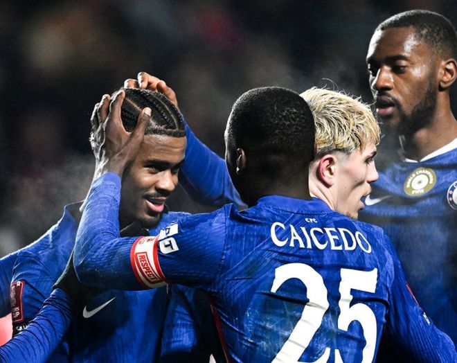 本場比賽切爾西排出了4231陣型。吉烏頂在最前麵。加納喬、法昆多-博納諾特和吉騰斯的進攻組合聯袂出擊。安德雷-桑托斯和凱塞多組成雙後腰。哈托、巴迪亞西勒、阿達拉比奧尤和喬希-阿昌龐4後衛首發出戰。菲利普-約恩森擔任首發門將。佩德羅-內托和恩佐-費爾南德斯坐在替補席待命。