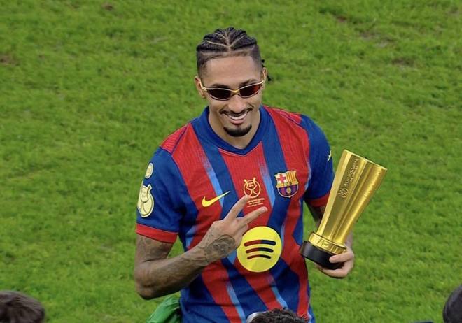 易邊再戰,比賽第73分鍾,奧爾莫橫敲,拉菲尼亞禁區內冷靜推射完成梅開二度,巴薩3-2皇馬,第三次取得領先,也最終守住勝果,巴薩成功衛冕西班牙超級杯。這不僅是他們連續第三次在決賽擊敗皇馬,也是西超杯改製後,首支完成衛冕的西甲球隊。