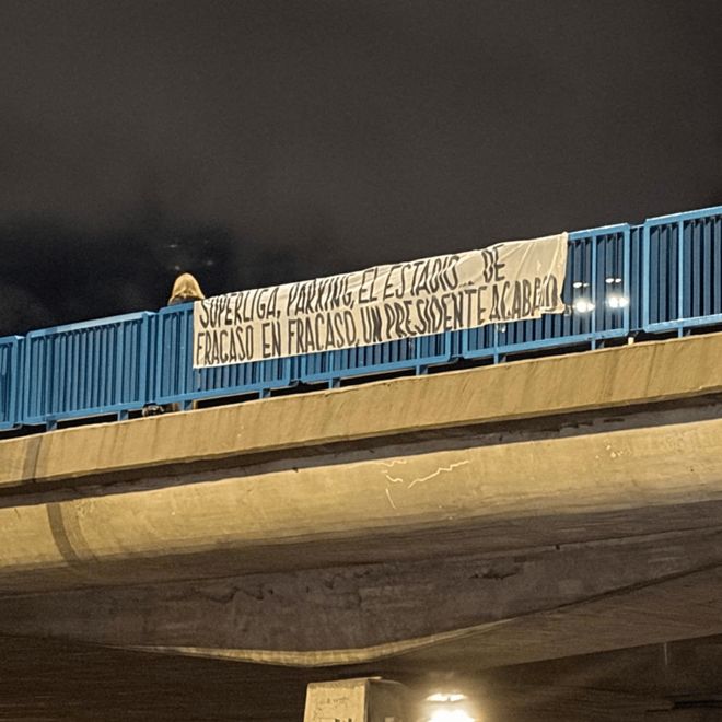 從《科貝電台》曝光的圖片可以看到,皇馬球迷拉出的橫幅以大幅白布形式,懸掛在城市不同位置,上麵寫有“弗洛倫蒂諾:Game Over”,“從歐超聯賽到球場改建,失敗接著失敗,一個走到盡頭的主席”等字樣。還有橫幅直接以嘲諷語氣指向其管理方向,表達對俱樂部未來的不信任。