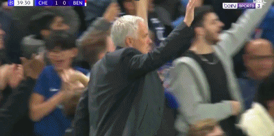 第41分鍾,本菲卡球迷情緒激動,穆裏尼奧安撫球迷