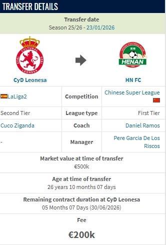 德轉顯示,西乙萊昂文體邊鋒姆布拉加盟河南隊的轉會費為20萬歐。