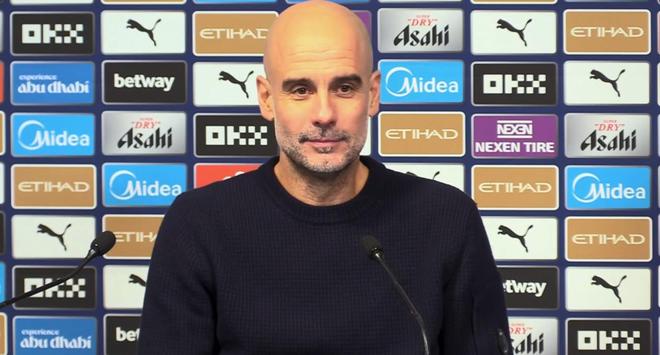 英超第23輪,曼城主場2-0擊敗狼隊,賽後,曼城主帥瓜迪奧拉出席新聞發布會接受媒體提問。