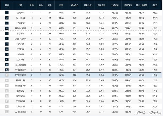 CBA積分榜最新排名出爐!遼籃慘敗廣東跌至第10:上海第1山西第7